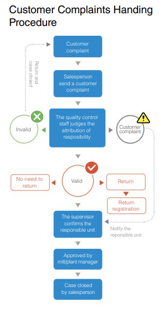 To effectively settle customer complaints and handle product returns, we have established a well-planned management mechanism and customer complaint handling procedure for QC personnel and related staff to communicate with customers and determine and analyze the anomalies complained by customers. The production and related units will analyze and investigate the causes of anomalies, make feedback, and propose corrective and preventive action to prevent the recurrence of the same mistake. We have digitized the customer settlement process. Besides enhancing the handling efficiency of customer complaints, data and records are retained and managed electronically to enhance service quality.