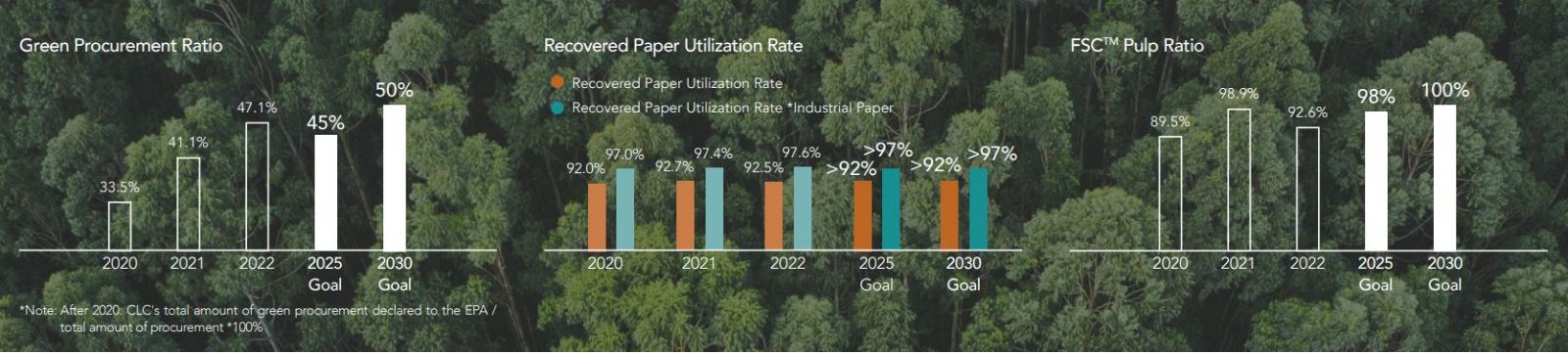 ●  Goals of 2030:Green procurement ratio at 50% / FSC™ pulp ratio at 100%.