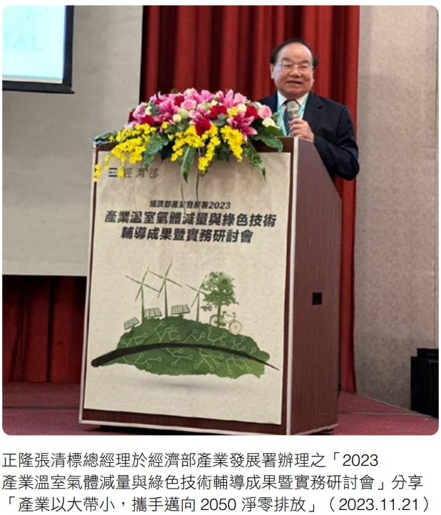 面對全球淨零與碳中和供應鏈趨勢,永續實踐不能單打獨鬥。對內,本公司積極穩健加速以正隆為首的產業鏈低碳轉型:對外,長期分享低碳轉型實務經驗, 致力協助中小型企業因應排山倒海而來的永續法遵和趨勢。響應政府以大帶小政策,2023年更攜手20家產業鏈夥伴率先成立台灣造紙業第一個「產業碳中和聯盟」,建置本土產業碳數據資料庫,完成首例工業用紙碳足跡盤查。發揮企業影響力,帶動產業鏈減碳投資逾2.5億元,貢獻年減排量達11,959公噸,節能 費用每年超過5,500萬元,提升整體造紙業的國際競爭力。